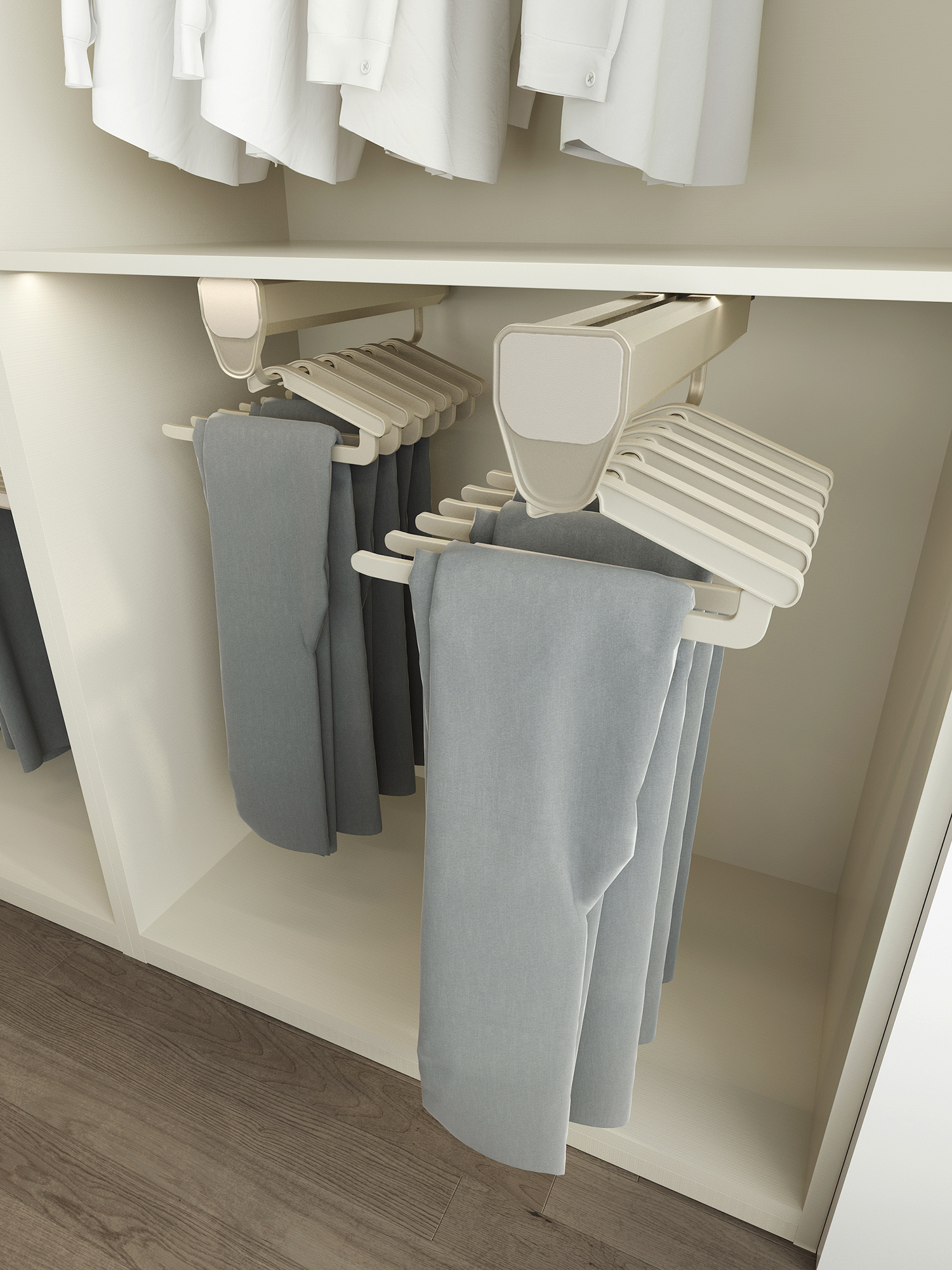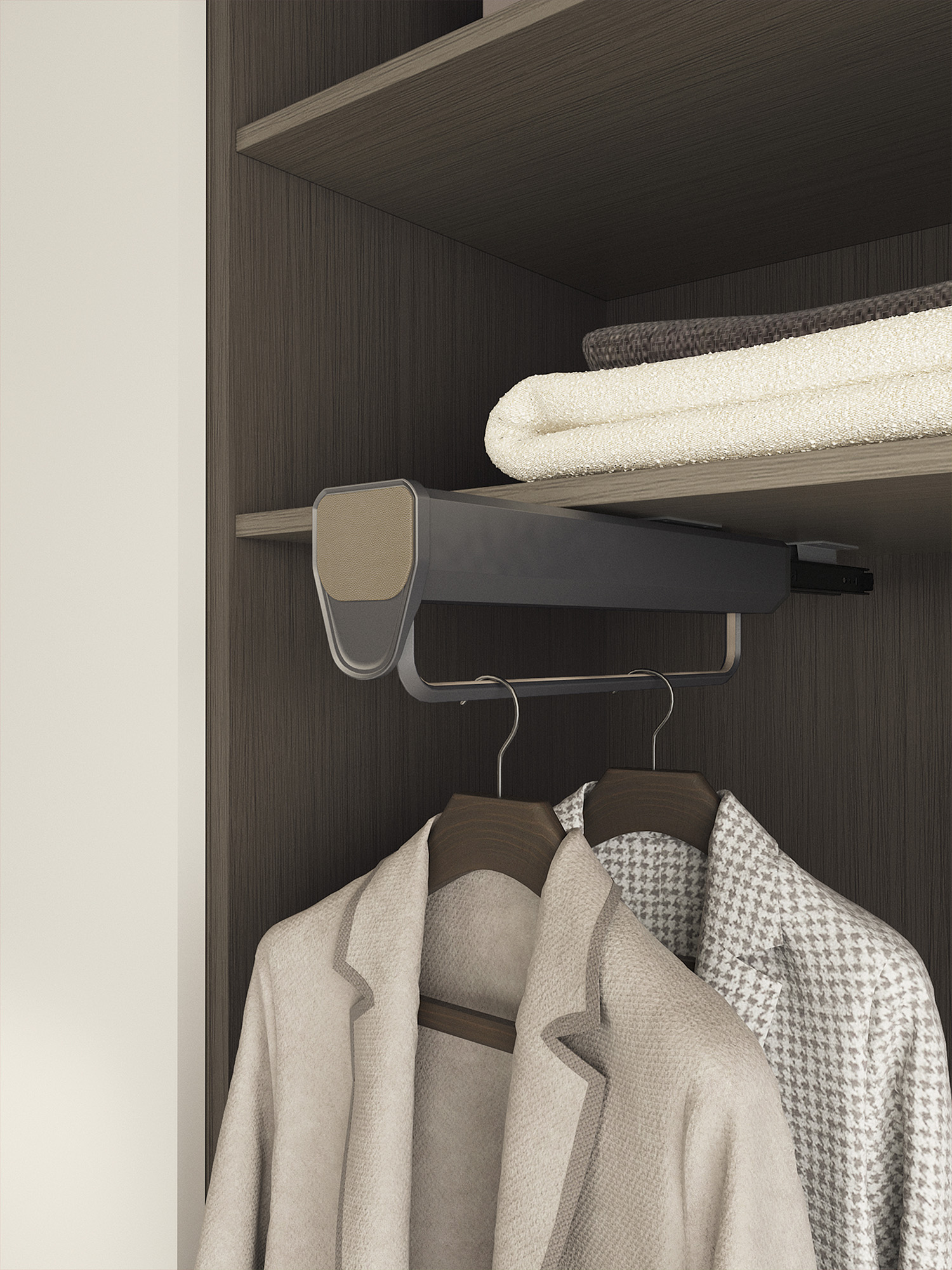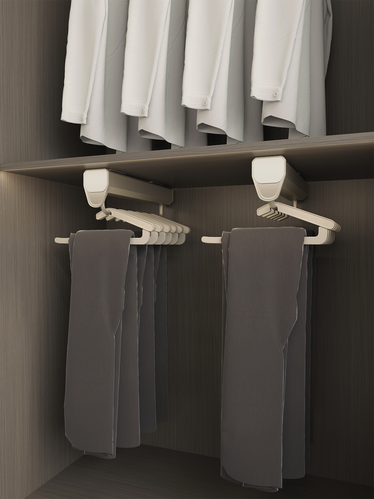 2. 单元柜内,可安装多个抽拉挂衣杆;